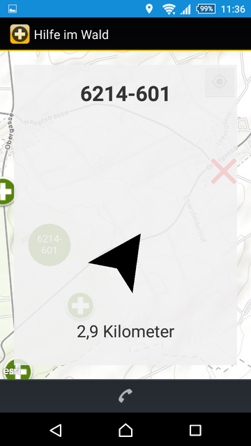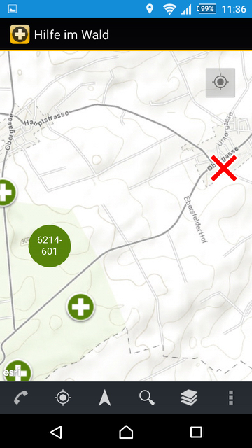 In meinem Test im Staatsforst „Vorholz“ funktionierte die App bei der Ortung des eigenen Standortes. Dafür muss das GPS im Handy aktiviert sein. Leider wird nicht der nächstgelegene Rettungspunkt farblich oder durch einen Hinweis in der App hervorgehoben. Man muss also die nächstgelegenen Rettungspunkte zur georteten Position manuell auswählen und die Entfernung zu diesen Rettungspunkten vergleichen.